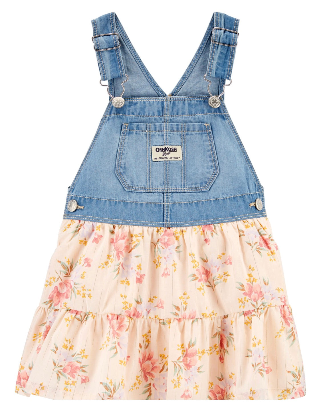 Denim overall with flower print skirt