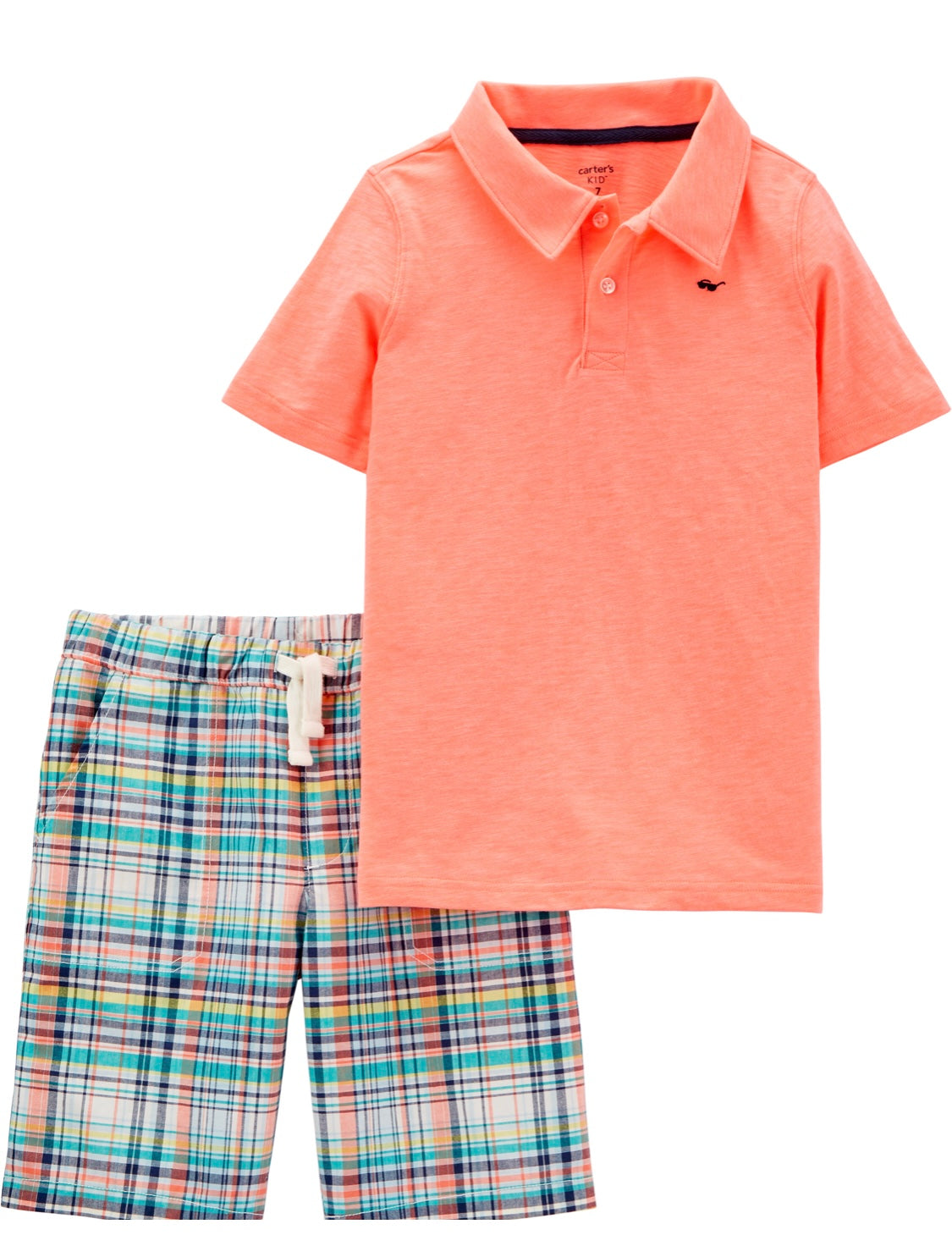 Neon Slub polo and plaid shorts